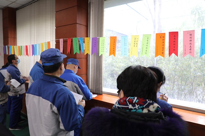 猜燈謎,與燈籠相伴而生。書于燈,映于燭,賦于形,藏于字。活動(dòng)現(xiàn)場(chǎng),一個(gè)個(gè)精美靈動(dòng)、古色古香的燈籠呈現(xiàn)出濃濃的節(jié)日氣氛,一則則獨(dú)特的燈謎吸引了廣大黨員、職工踴躍競(jìng)猜,二百余條燈謎將黨史、廉政知識(shí)融入傳統(tǒng)民俗之中,詼諧幽默、寓意深遠(yuǎn)、耐人尋味。